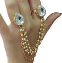 Retrend Accessories Two Finger Tilak Ring Alloy Diamond Brass Plated Chain Ring - Multi Finger