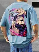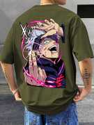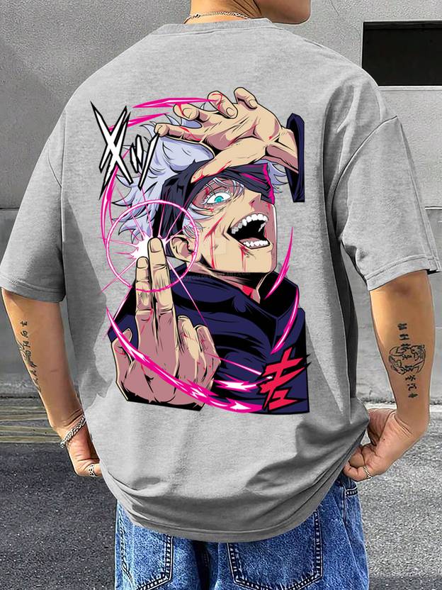 Unleash your inner anime fan with our exclusive black anime printed t-shirt! This stylish tee features a vibrant, eye-catching design of your favorite character, making it the perfect addition to any casual outfit. Crafted from high-quality, breathable cotton, this shirt ensures all-day comfort whether you're hanging out with friends, attending a convention, or just lounging at home. The classic black color provides a versatile backdrop that allows the colorful print to pop, making it a standout piece in your wardrobe. Designed for both comfort and style, this t-shirt boasts a relaxed fit that flatters all body types. The soft fabric feels great against your skin, while the durable print ensures that your favorite character stays vivid and intact, wash after wash. With a range of sizes available, you can find the perfect fit to showcase your love for anime. Pair it with jeans, shorts, or even joggers for a laid-back look that speaks volumes about your passion for anime culture.Don't miss out on the chance to express your fandom in style! This anime printed t-shirt is not just a piece of clothing; it's a statement. Whether you're gifting it to a fellow anime lover or treating yourself, this shirt is sure to spark conversations and turn heads. Grab yours today and wear your love for anime proudly!Step into the world of edgy street fashion with this men's oversized anime t-shirt inspired by the iconic character Gojo Satoru. Crafted for ultimate comfort and visual impact, this black tee features a bold and detailed graphic print on the back that reflects the power and attitude of anime culture. The oversized fit, drop shoulder sleeves, and soft cotton fabric offer a relaxed and breathable wearing experience, making it a perfect everyday essential for anime lovers and trendsetters. Whether you're hanging out with friends, heading to an anime convention, or styling up for a casual day out, this graphic tee will keep you cool, stylish, and expressive. Designed to resist fading even after multiple washes, it's built for both durability and personality. A must-have addition to any anime fanβs wardrobe!