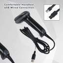 Barcode Scanner USB Wired 1D 2D Datamatrix QR Code Handheld Reader for Screen and Printed Bar Code Scan Works with Windows Mac and Linux PC POS Technical Specification:strong>Dimensions: 18cm H x 10.7Cm Large x 7cm Wstrong>Weight: 160gstrong>Voltage: 5VDC ± 10% @ 400mA Image (Pixels): 640pixels (H) x 480 pixels (V)strong>Light Source: Aiming 617nm LED, illumination 6500K LEDstrong>Field of View: 40 H x 26 Vstrong>Roll / Pitch / Yaw: 360, ±65, ±60strong>Print Contrast: 25% minimum reflective difference Interface: USB 1- Dimensional: Code 128, GS1 128, ISBT 128, 39, 39 Full ASCII, UPC/EAN, Codabar Bookland EAN, UCC Coupon Extended, Trioptic 39, 32, 93, 11, Matrix 2 of 5, Interleaved 2 of 5, Discrete 2 of 5, MSI, S1 DataBar variants 2 - Dimensional: PDF 417, Micro PDF 417, Composite Codes, Data Matrix, Maxicode, QR Code, Micro QR Code, Aztec Motion Tolerances: up to 25in. (63.5Cm) per second Operating Temperature: 32 to 122 F/ 0to 50 Cstrong>Storage Temperature: - 40to 158F / -40 to 70 Cstrong>Humidity: 5% to 95%, non-condensingstrong>Drop Specification: Multiple 1.5M(6ft. ) Drops to concrete Code 39 (5 mil): 40mm - 110mmstrong>UPCA (13 mil): 5mm - 280mmstrong>PDF 417 (6.8 Mil): 20mm-130mmstrong>DataMatrix (10 mil): 10mm-110mm.