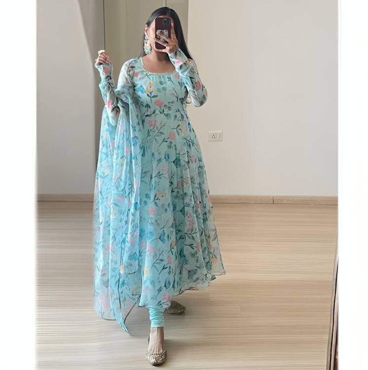 Transform any occasion into a celebration of style and grace with our AquaBlue Anarkali Gown. Embrace the charm of timeless fashion with every wear.