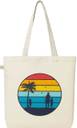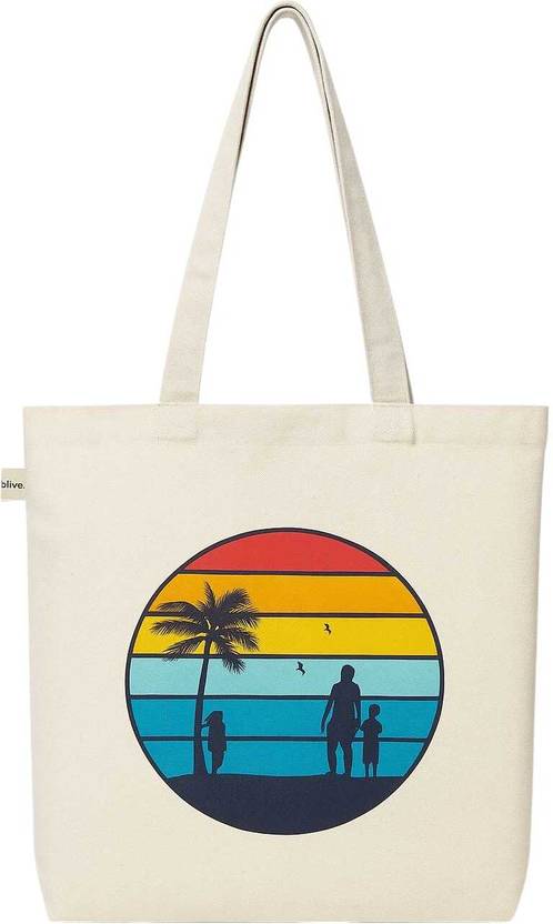 ReVerve White Tote Beach Date Print Cotton Canvas Tote Bag – Multi-Pocket Zipper Bag