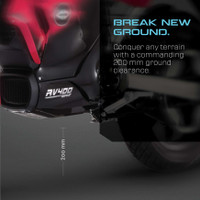 Combi Brake System, split seat, 200 mm ground clearance, 815 mm Rider seat height, Payload capacity up to 150 kg.
