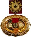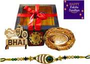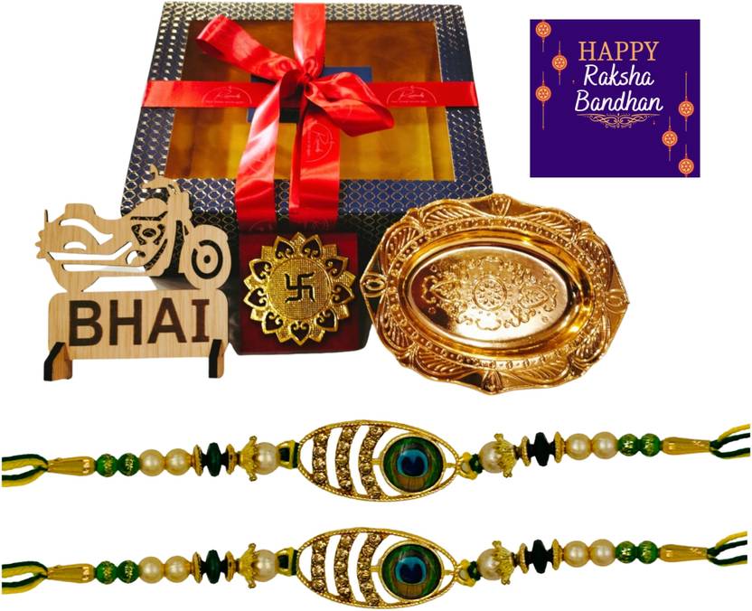 AD Meena Peacock Feather Eye Rakhi Stand Roli Chawal Chandan Card Plate Mishri