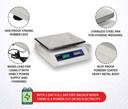 REXBURG 30kg x 1g Accuracy, SS Pan size 10x12" Chargeable Front & Back Display for Shops Weighing Scale (White)