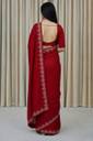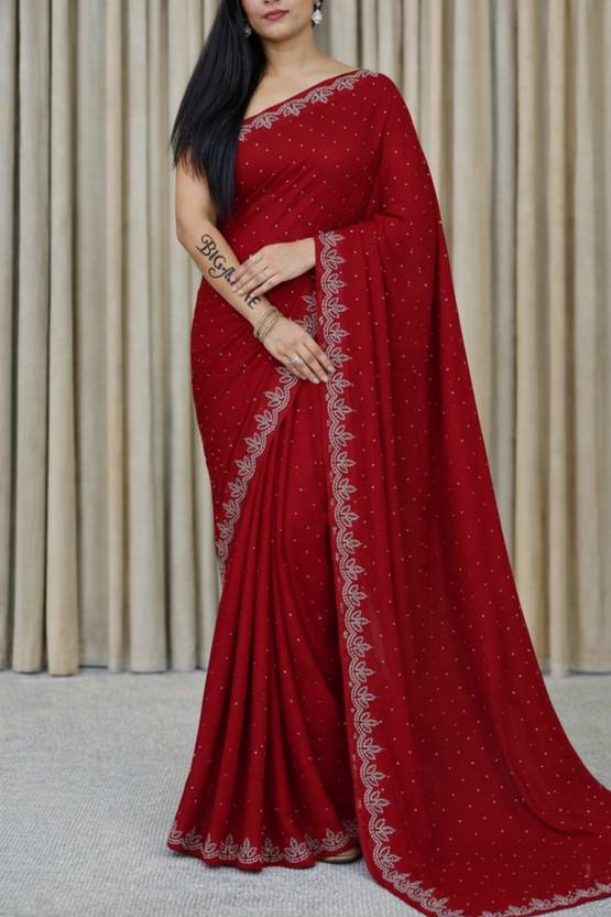 REXZA Solid/Plain Daily Wear Georgette Saree (Red)