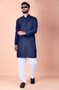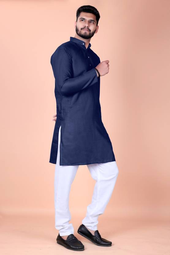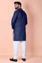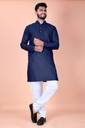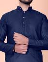 Men Self Design Cotton Blend Straight Kurta (Dark Blue)