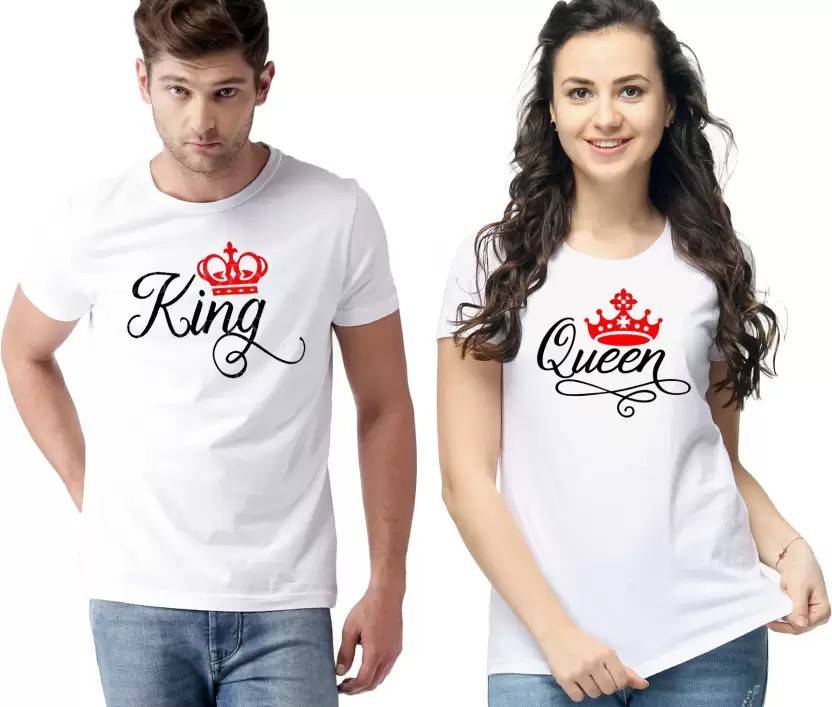 REYBAQ Printed Couple Round Neck White T-Shirt