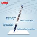 Special ink for fast writing Advanced fluid ink technology Water-resistant ink Refillable fluid ink system
