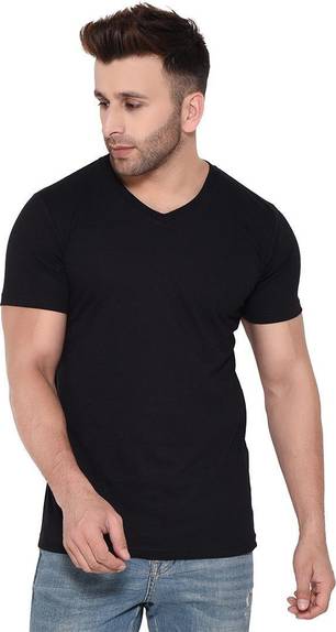 Rezalia Solid Men V Neck Black T-Shirt