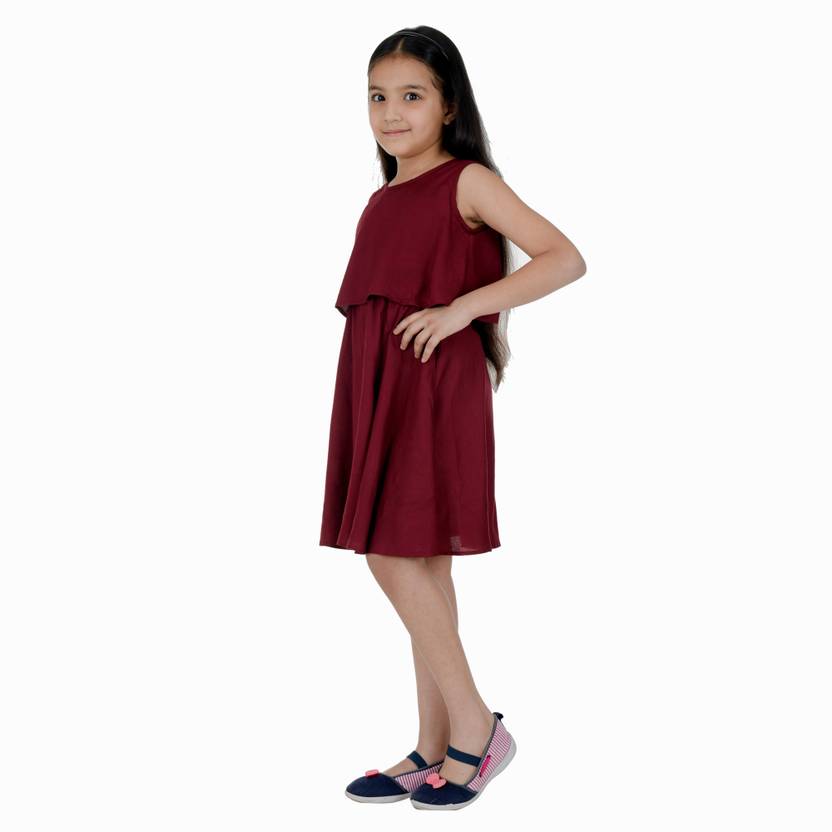 Girls Midi/Knee Length Casual Dress (Maroon, Sleeveless)