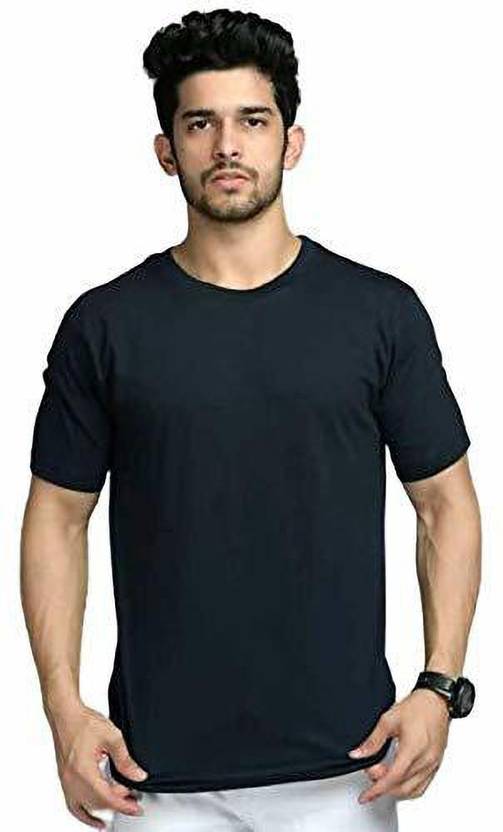 RF Men Solid Round Neck Cotton Blend Black T-Shirt