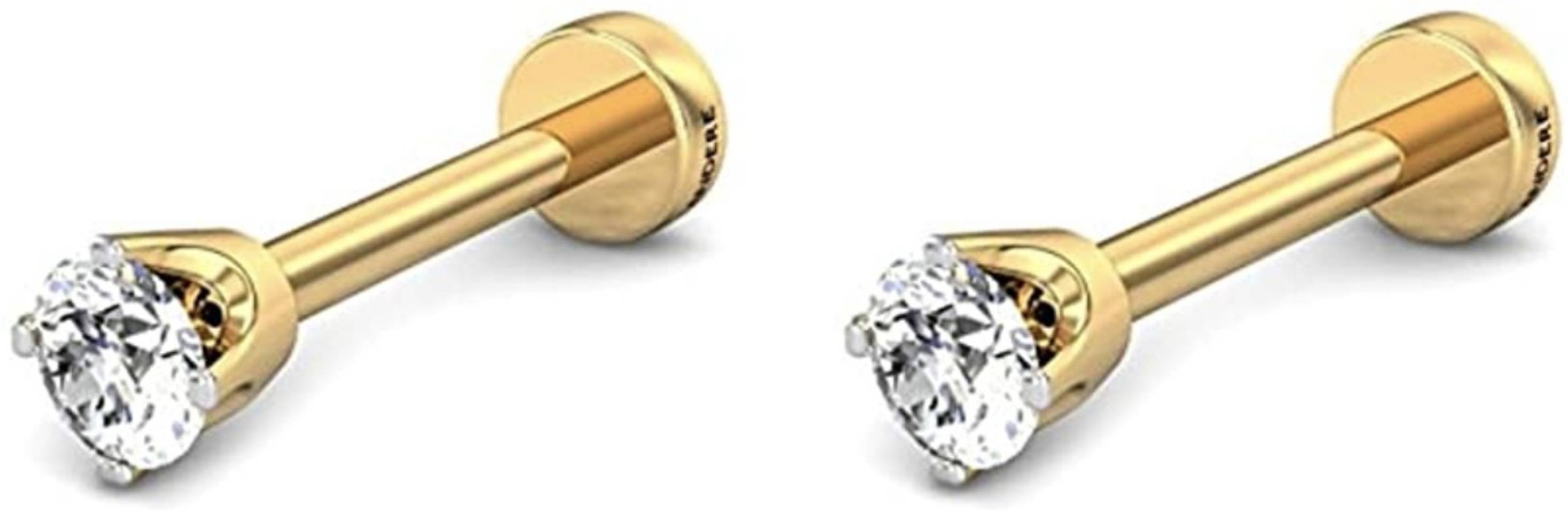 RFJ Stylish White Colour Stone Studded Second Stud Brass Stud Earring