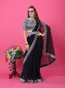 Solid/Plain, Digital Print Daily Wear Georgette, Muslin Saree (Dark Blue)