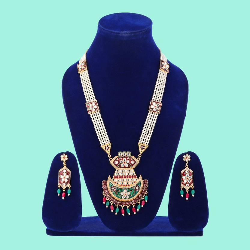 Artificial Imitation Elegant Stylish Traditional Marwadi Rajwadi Jadau Party & Casual Wear Long Necklace Rani Haar with Earring Set (BJLH BDD 215 Chanda cpy8)