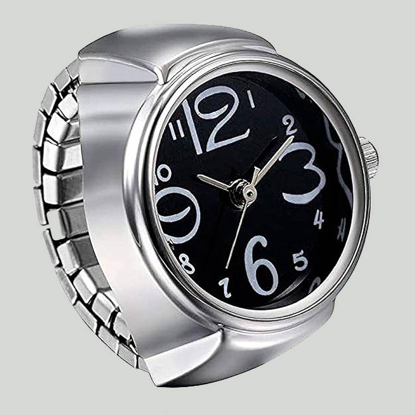 Silver-Plated Adjustable Watch Finger Ring, Stretchable Analogue Watch Ring, Watch Designed Stretchable Rings for Women and Men, Gifts for Valntines Day, Birthday Gift, Anniversary Gift, Friendship Day Gift or Gift Yourself.
