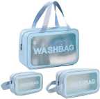 Rhydin Blue Multipurpose Clear Cosmetic Travel Wash Bag Toiletry Makeup Organizer Bag Travel Toiletry Kit (Blue)
