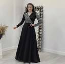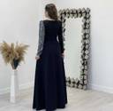 Step into elegance with this stunning black evening gown, designed to make a statement. Featuring a floor-length flared silhouette, this dress exudes sophistication and grace. The shimmering sequin detailing on the bodice and sleeves adds a touch of glamour, making it perfect for parties, receptions, formal events, and special occasions.