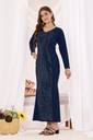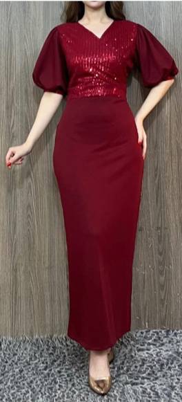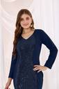 Step into elegance with this stunning Navy Blue Long Gown featuring a sleek bodycon fit and shimmering sequin detailing at the front. Designed with full sleeves and a V-neckline, this dress combines comfort and style effortlessly. Perfect for parties, weddings, and evening events, its premium fabric ensures a flattering silhouette and long-lasting wear. Pair it with statement earrings and heels for a complete glamorous look.Elegant party wear maxi gown