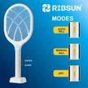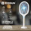 RIBSUN 2 in 1 UV Light Mosquito Racquet Electric with Base Stand, USB Type-C Charging Electric Insect Killer Indoor (Bat)