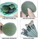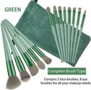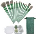 13 pcs makeup brushes set with different functions (5 pcs face makeup brushes and 8 pcs eyeshadow brush set) + 1 make up brush storage bag + 4 large makeup sponge eggs of different shapes in a transparent case.