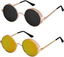 UV Protection, Mirrored, Gradient Round Sunglasses (51) (For Men, Black)