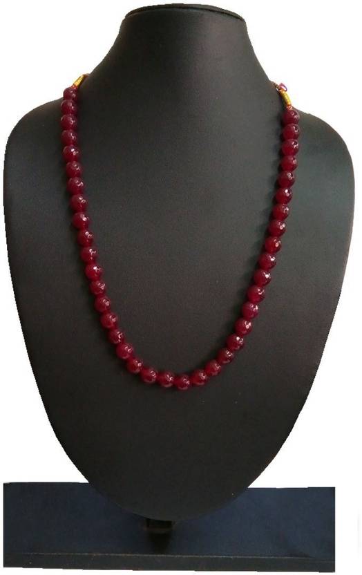 Rich & Famous Present Maroon Colored Ruby Quartz Necklace for Women. Necklace Length: 16 inches, Ruby Quartz Stone Width is 4mm-12mm, Item Weight: 42gm. Ruby stone is well known as a deep red gemstone and crystal. It is an excellent stone for recharging your energy levels, and it may stimulate your mind to be more positive and self-assured. Its striking color is analogous of its energy, which is very effective for encouraging vitality, sensuality and sexual energy. The Red Ruby has always enchanted the jewelry buyer. It being his/her birthstone, the bright red sensuous stone, associated with passion and vitality has had a special place in his/her heart as compared to the other gemstones. It is found in a variety of crimson and scarlet red colors ranging from pink to a deep ruddy violet color. It has the smooth and delicate luster of classified butter. The finest quality ruby has a delicate rose color, similar to the eye of a living cuckoo. BEST QUALITY SEMI PRECIOUS GEMSTONES: The gemstones are treated in Ruby shade and are flash heated to prevent any color bleeding. GIFT FOR HER - Ideal Valentine, Birthday, and Anniversary gift for someone you LOVE. Sales Package: 1 Necklace