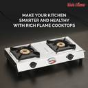 Rich flame Classic Unite Gas Stove 2 Burner Stove Steel | ISI Certified |Kitchen Gas Chulha Stainless Steel Manual Gas Stove (2 Burners)