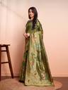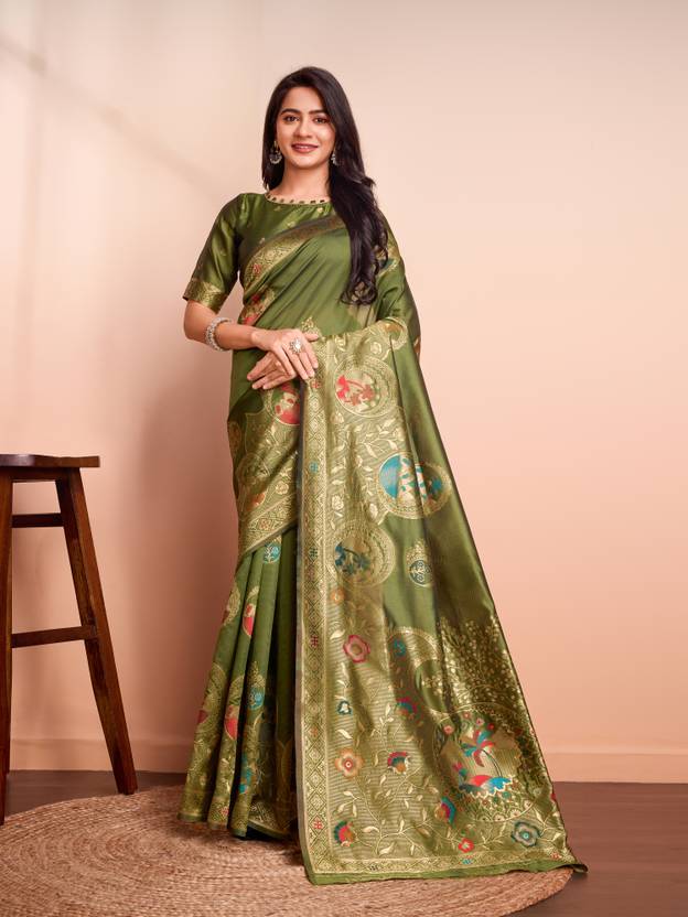 Featuring a Banarasi woven pattern, the RICH & ROMAN Woven Banarasi Saree offers comfort and style. Its beautiful pattern woven into the fabric exudes grandeur and sophistication. Furthermore, its floral motif work is exquisite and adds grace to your ensemble. ,Amplify your ethnic collection with this stunning saree. Complete your look with minimalist teardrop-shaped drop earrings, cork high heels, and a pearl bracelet.Offering versatility, this saree is suitable for various occasions, be it weddings and festive celebrations. Its charm ensures that you become the centre of attention and admiration, wherever you choose to flaunt its elegance. So, with this saree, you can effortlessly capture the essence of enduring style,Designed with the opulence of golden soft zari threadwork, this saree not only shimmers but also radiates regal elegance. Its golden threadwork, woven meticulously into the fabric, elevates your attire to royal heights. And, the use of decorative material adds a sparkling effect, creating a positive aura around you.