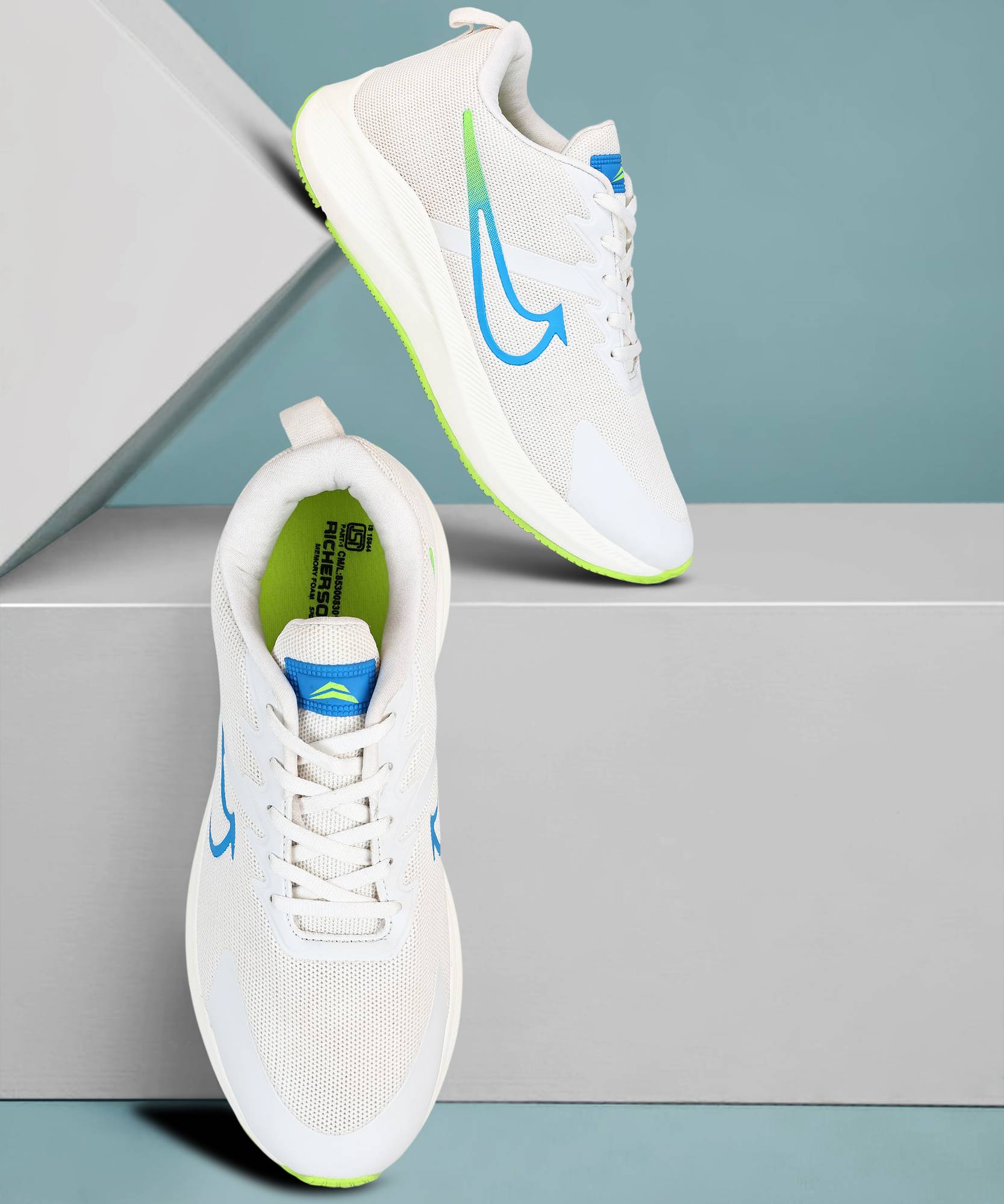 richerson Running shoes for men Running Shoes For Men (Off White, Green , 8)