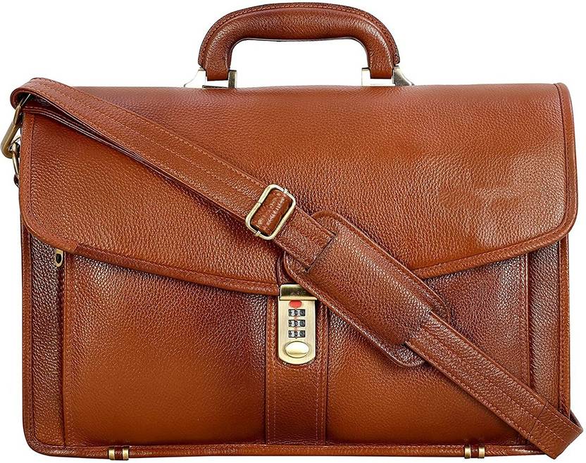 MADE OF GENUINE NATURAL FULL GRAIN BUFFALO 100 % LEATHER., Outer Material: NATURAL BUFFALO LEATHER | Inner Material - Fabric, 24 Litres Capacity | Dimension- L-45 X H-31 x W- 13 Centimetre | Weight- 1.3 KG / 1300 GR., 3 Main Compartments With 15.6 Inch Zip Compartment & Inner Mesh Organizer Panel At Back, Closure Type : Zipper & 3 Digit Numerical Lock | Handle Type: Fixed Solid Full Grain Leather BRIEFCASE Handle | Shoulder Type - Removable & Adjustable Shoulder Strap (detachable).| Carried in 3 Ways - (1.Shoulder bag, 2.Briefcase, 3.Cross Body Messenger Bag)