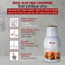 Thanks to its powerful motor and chopper blade, the Rico CH01 250 W Fruit and Vegetable Chopper renders efficient and effective chopping results regardless of the ingredients.