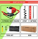 RICO ITALY 52cc Earth auger machine with 6 inch drill bit used for tree plantation, diggering in holes,, Heavy Duty machine with advance technology air cooled 2 stroke petrol engine Auger Drill (One Man Operation)