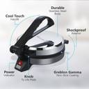 This roti maker from Rico helps you to quickly and easily make round, light, and puffed-up rotis for your family and guests. This lightweight appliance is easy to handle and helps in simplifying the tedious task of rolling out the dough and cooking it on the pan.