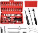 46-Piece Auto Repair Tool Set, Manual Hardware Tool Set, Small Flying Wrench Set Suitable for Dismantling Small Accessories Such as Throttles, Air Filters, Etc. It Can Also Be Used as a Gift Set for Car 4s Shops, Home Improvement Companies, Real Estate, Etc. This Set Is a Small Sleeve Ratchet Wrench Set. the Large Sleeve Is 14mm. .c Compatible With Most Bolts / Nuts / Screws In Machines, Automotive, Furniture, Appliance, Computers, Bicycles, Toys And So On. Comes With A Sturdy Case For Convenient Tool Storage And Travel. Auto maintenance kit 1/4-inch car repair tools main features: type: hand tools, combination, wrenches, sockets, ratchet, vehicle maintenance and repair tools. tools product specifications: 13pcs 1/4 inches dr sockets: 4, 4.5, 5, 5.5, 6, 7, 8, 9, 10, 11, 12, 13, 14mm 21pcs dr bit sockets: ph 1, 2, 3, pz 1, 2, 3; fd 4, 5.5, 7; hw 3, 4 , 5, 6 , 7, 8; t 10, 15, 20 , 25, 30, 40 2pcs 1/4 inches dr extension bars 1pcs 1/4 inches dr quick ratchet 3pcs hex key wrenches: 1.5, 2, 2.5mm 1pcs 1/4 inches dr universal joint 1pcs 1/4 inches dr sliding bar 1pcs 1/4 inches dr flexible extension 1pcs 1/4 inches dr spinner handle 1pcs bit adaptor 1pcs blow case package Specification : Flower type hexagon socket: T10/T15/T20/T25/T30/T40 Flat head hexagon socket: H3/H4/H5/H6/H7/H8 One word: S4/S5.5/S7 Cross: PH1/PH2/PH3 Rice word: PZ1/PZ2/PZ3