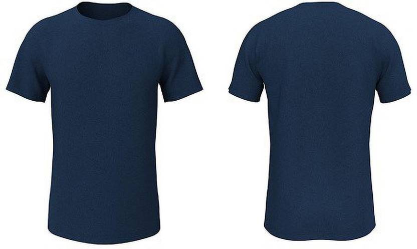 Women Solid Round Neck Cotton Blend Navy Blue T-Shirt