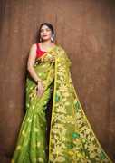 The Soft Dhakai jamdani Saree is a beautiful garment that blends traditional craftsmanship with natural fabric. Embrace elegance and comfort with our exquisite Soft Dhakai jamdani Saree. Crafted from high-quality cotton silk, this saree features a stunning print that brings a vibrant touch to your wardrobe. known for its textured feel and breathability, making it comfortable to wear in various climates , which are likely vibrant and intricate due to the handcrafted nature. Soft Dhakai jamdani adds a unique touch to each saree, making it perfect for both casual outings and festive occasions.