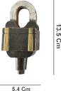 Dimensions: 5.4 X 4.5 X 13.5 (L X B X H) Cms Approx 2.1 X 1.6 X 5.3 (L X B X H) Inches Approx Weight: 1004 Grams, Material : Brass & Iron, Net Content : 1 Padlock & 6 Keys, DURABLE DESIGN: Padlock features a durable solid brass body and a steel shackle for cut resistance.