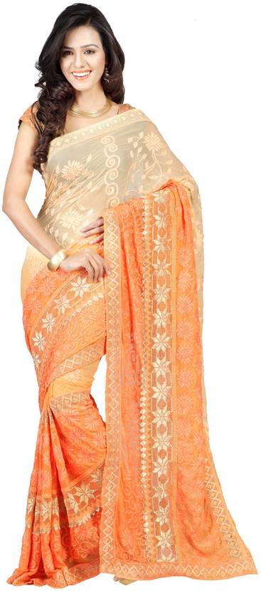 Self Design, Embroidered Bollywood Georgette Saree (Orange)