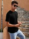 TAGDO Men Solid Round Neck Cotton Blend Black T-Shirt