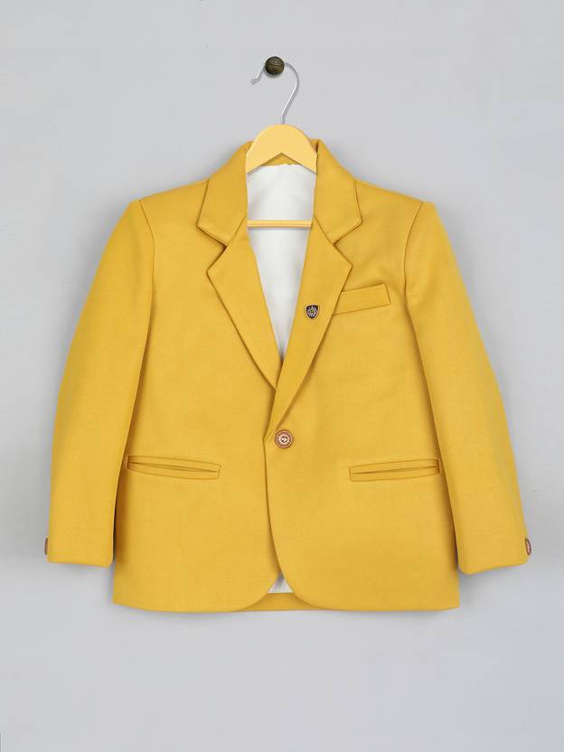 Ridokidz Solid Single Breasted Casual Boys Blazer (Yellow)