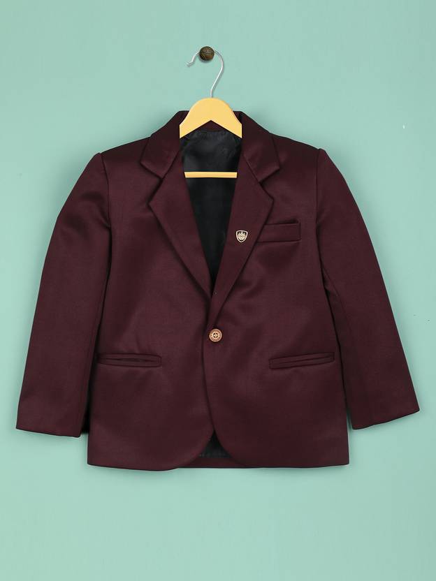 Ridokidz Solid Single Breasted Casual Boys Blazer (Maroon)