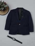 solid single-breasted smart-fit Light weight cotton fabric blazer, has a notched lapel, long sleeves, two flap pockets, button closure, attached lining, Italian Styled Back with no vents
