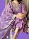 Women Georgette Crop Top Dhoti Pant Ethnic Jacket Set