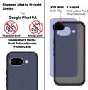 Give your smartphone the perfect balance of style and protection with the Riggear Sleek Hybrid Armor Series Phone Case & Back Cover. Specially designed for Google Pixel 9A , this premium case offers a matte finish back PC with strong shockproof protection. The smoke black PC back is scratch-resistant, fingerprint-proof, and will never turn yellow, keeping your phone looking new at all times. Paired with a 2.0mm TPU bumper frame and advanced corner airbag technology, it delivers the best drop protection without compromising on slimness or grip.