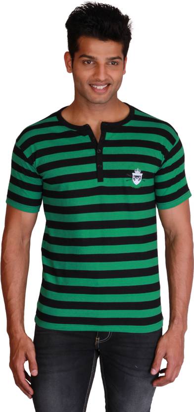 Rightshape Striped Men Henley Neck Green, Black T-Shirt