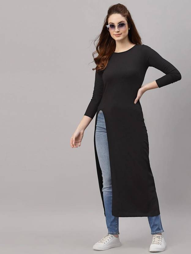 Rigo Women's LongLine side Slits Side Solid Kurta Top For Daily Use. This Product Features Long Length, Side Slit, Round Neck in a Comfortable & Soft Feel Cotton Fabric. This Longline Top kurta have Multiple Uses Like Casual Wear, Daily Rountine Wear, Day to Day Wear, Party, Dating and Outing. You Must Have this Beautifull Ensemble In For Your Wardrobe. This Longline kurta top Comes In Black Color Options & size Ranges From Small to Large Please Check Out Size Chart Image In Image Section Before Making A Purchase For A Perfect Fit.
