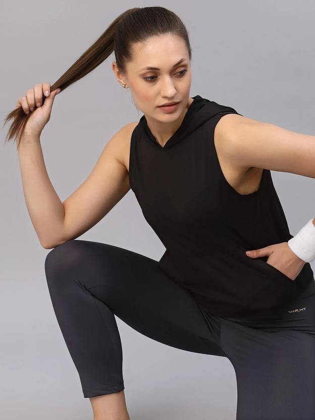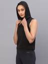 Women Black Hooded With Kangaroo Pocket Sleeveless Activewear Top