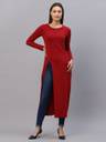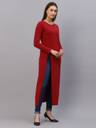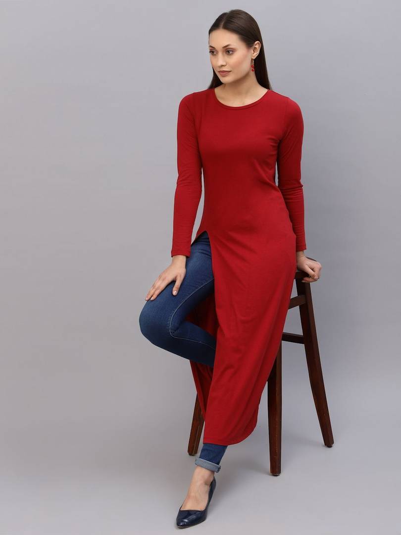 Rigo offers women cotton knitted maroon maxi top with full sleeve and a round neck. It is durable, super-comfy, affordable, odorless, and anti-fading, making it a perfect choice for women of all ages. Crafted with high-quality cotton, the slim-fit solid maxi top can be worn with all kinds of bottoms, be it boyfriend jeans for a relaxed look, joggers for a chic look, or high waist jeans for a classy look. It never fails to leave an impression on people.