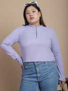 RIGO presents women's Tops made from rich textured waffle knit fabric. The Light Purple Crop Top is a fall/winter wardrobe essential, perfect for your outgoing look. It features solid pattern, has high neck with zipper closure, full sleeves, crop length, and regular fit. Wear it with your favorite denim and a pair of chunky boots for a stylish look and stay looking sharp and comfortable this fall/winter in this solid crop top. Constructed from rich textured material, it's perfect for outdoor trips and chilled weather. As a bonus, its regular-fitting design ensures warmth & comfort all day long.