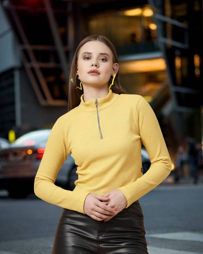 Casual Regular Sleeves Solid Women Yellow Top